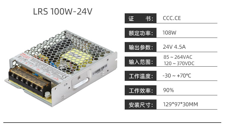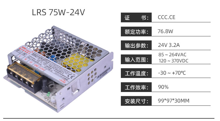 24V开关电源是一种将输入电压变换为稳定输出电压的电源设备。它具有输入电压范围广泛、输出电压稳定、输出电流大、效率高等特点。