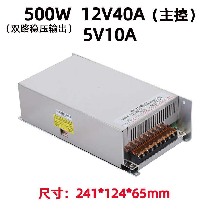 型号含义:500 = 额定功率 500W;M = 双路稳压输出系列;12 = 第一路输出 12V;5 = 第二路输出 5V。