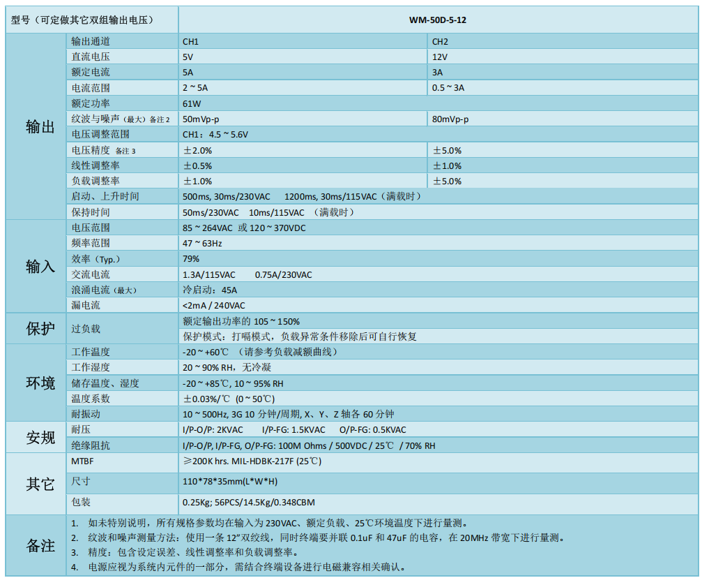 旺马50W开关电源的寿命通常在5-8年,具体取决于使用环境与维护情况。其LRS系列产品通过CE/CCC认证,采用高频切换技术和散热优化设计,MTBF(平均无故障时间)≥50万小时