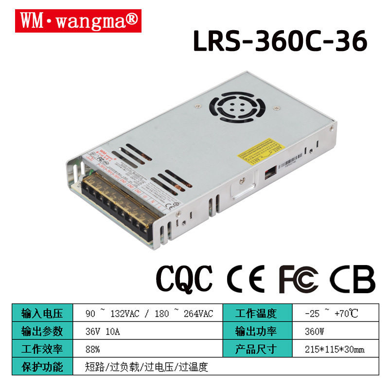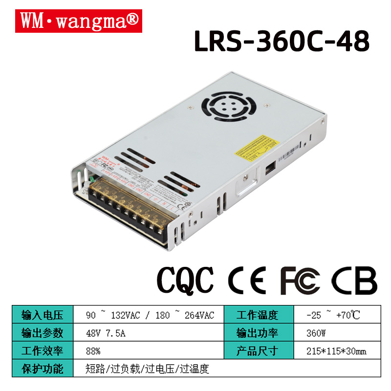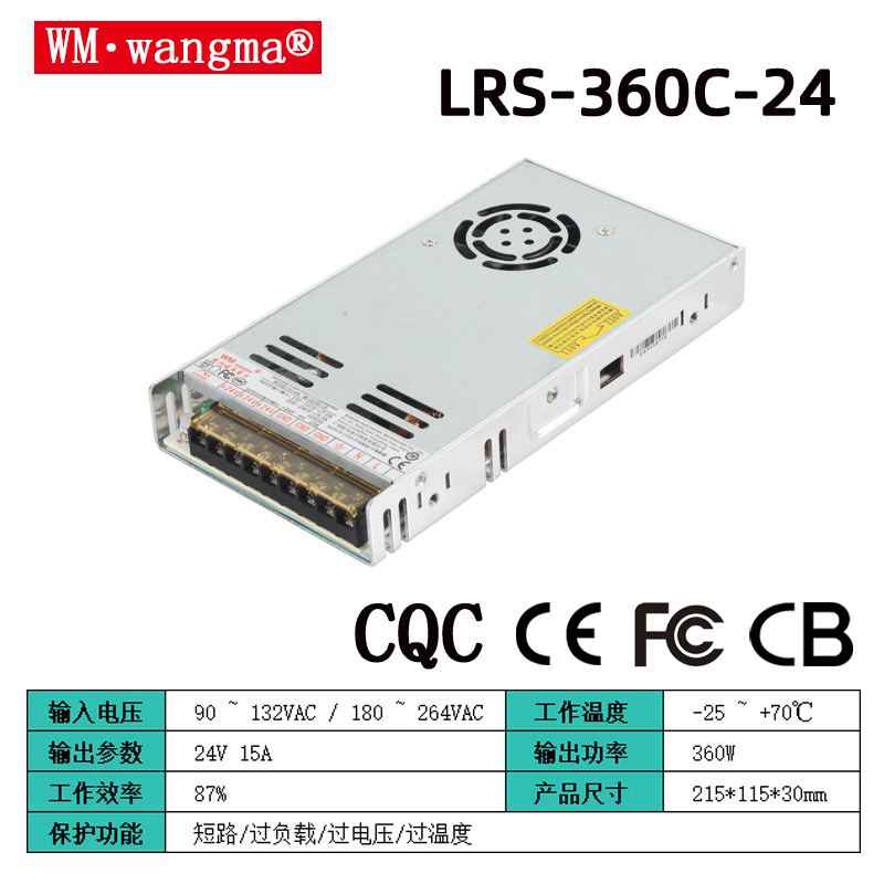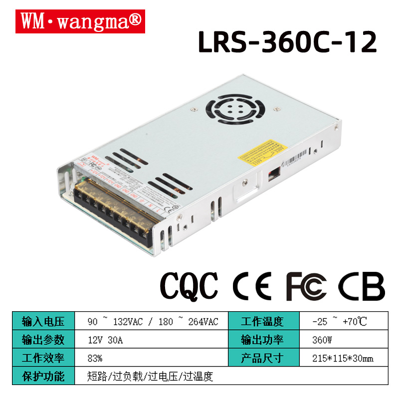 旺马 LRS-360C 系列(360W 超薄单组输出工业开关电源)的核心参数、产品特点、适用场景与选型建议,方便直接用于推广和选型。