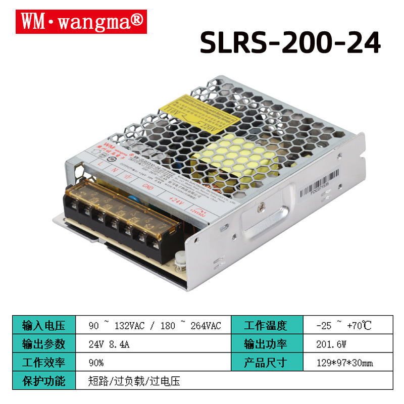 旺马 SLRS-200(通常标注为 LRS-200 200W) 系列工业级单路输出开关电源的完整资料,适合工业自动化、设备控制、LED 供电等场景,以下是详细参数、特性、型号与应用: