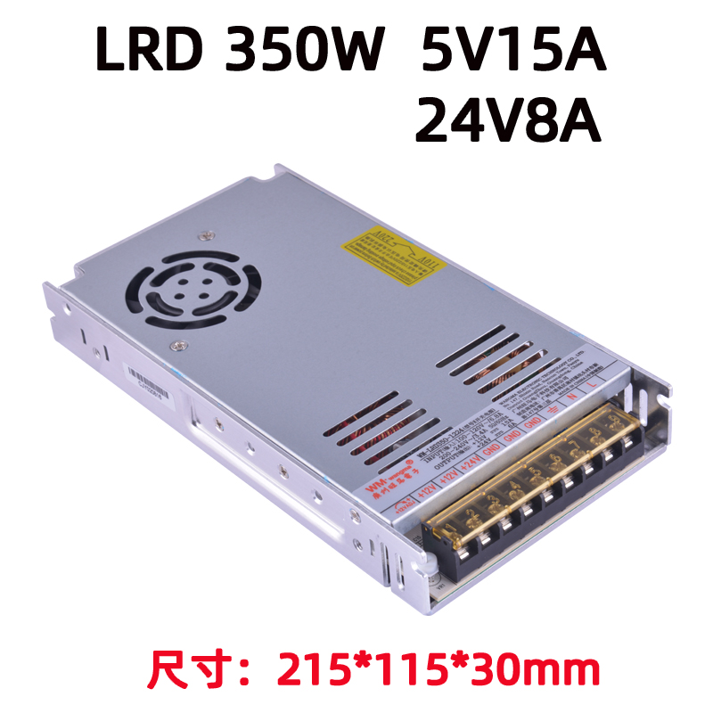 旺马 LRD350W-5V24V 是广州旺马电子推出的350W 超薄双路输出工业级开关电源,专为需要同时提供 5V 与 24V 直流供电的设备设计,具备高效、稳定、高可靠的特点,适配工业自动化、安防、自助终端等多场景。
