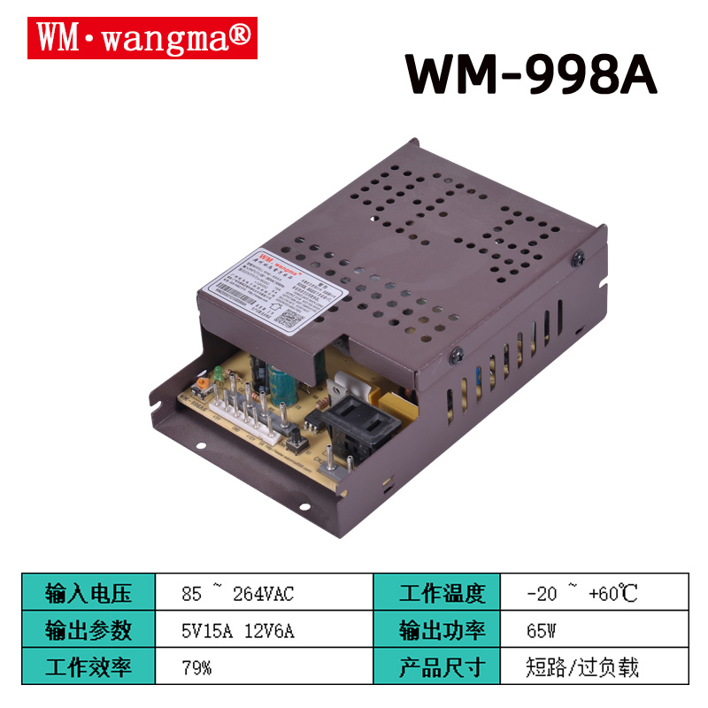 旺马 WM-998A 是专为游艺 / 游戏机设计的双路输出开关电源,主打5V/12V 双路供电,适配格斗机、娃娃机、投币机等主流游艺设备。